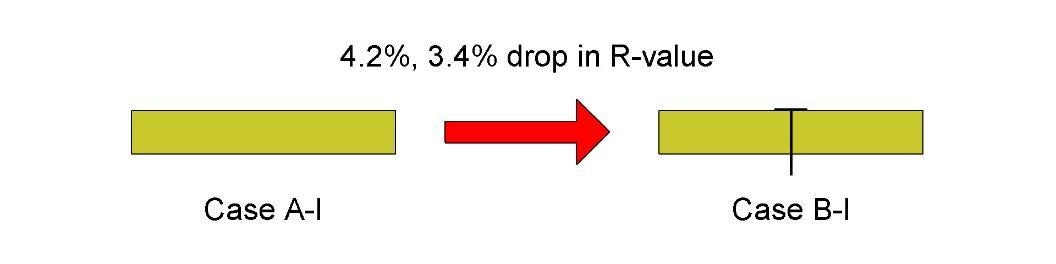 First, it's no surprise that the fastener reduced the R-value of the 2' x 2' sample of ISO alone by 4.2% in the physical sample, and 3.4% in the computer simulation (Case B-I compared to Case A-I).
