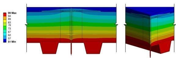 One visualization of the computer simulation is shown here, for Case B-IV. The stripes of color, or isotherms, show the vulnerability of the assembly at the location of the fastener.