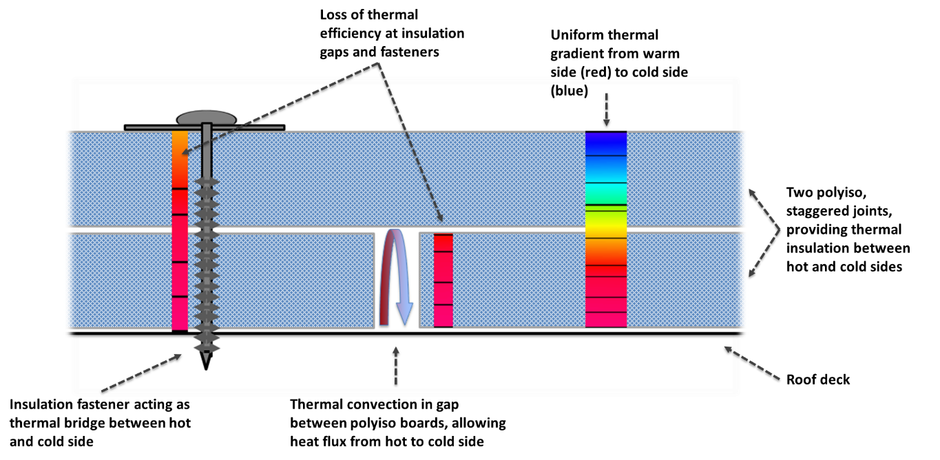 Figure 1: Lower energy efficiency resulting from air movement between boards and fasteners acting as a thermal bridge.