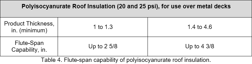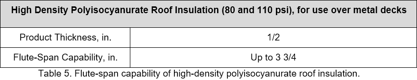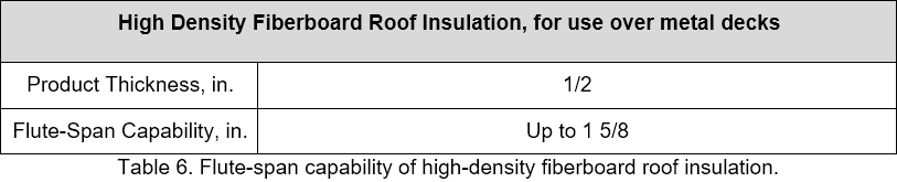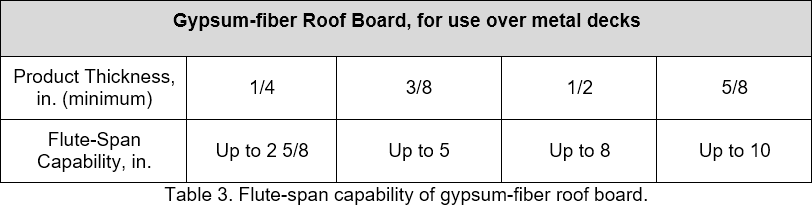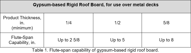 Often overlooked when installing a roof system over a steel roof deck is the flute-span capability of insulation and rigid boards that are placed directly on top of a steel roof deck. The selection of an appropriate material to be installed over the gaps in steel roof decks (the flutes) is important during both construction and the life of the roof.
