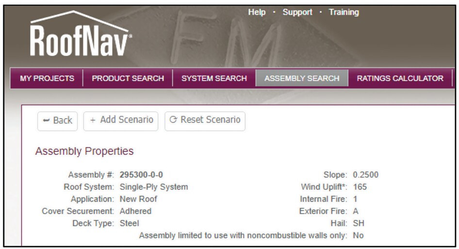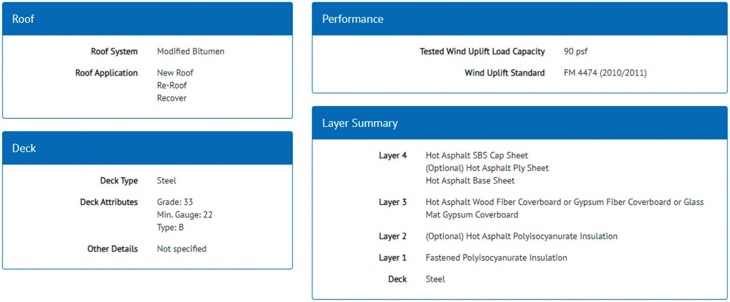 Figure 4: An example of an approval listing in the Directory of Roofing Assemblies (dora-directory.com).
