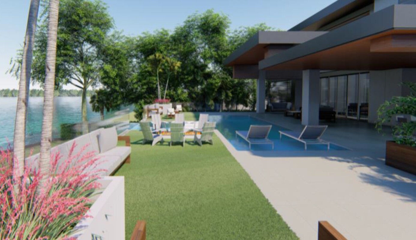 Located in the Doctor Phillips area of Central Florida, the showcase home lies just minutes from the Disney theme parks and is situated along the banks of the Butler chain of lakes. The Lake Sheen Showcase Home incorporates design and construction elements reminiscent of Florida's picturesque waterways. A pool on the second floor cascades over a first-floor living room in a beautiful 13-foot-tall waterfall. Expansive 12-foot-wide windows look out over the nearby lake and out onto a giant mango trees.