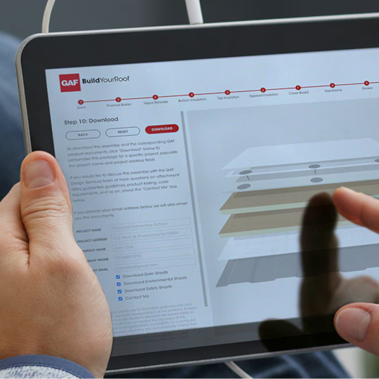 Assemble your own virtual commercial roof, get relevant product documents, and connect with a regional design specialist.
