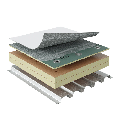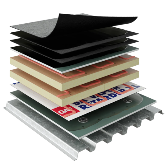 RUBEROID® HW Plus Granule Membrane over DEXcell FA VSH™ Glass Mat Roof Board