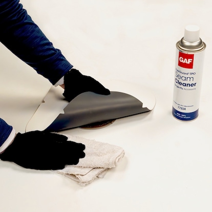 Clean the roof surface with EverGuard® Seam Cleaner. -
